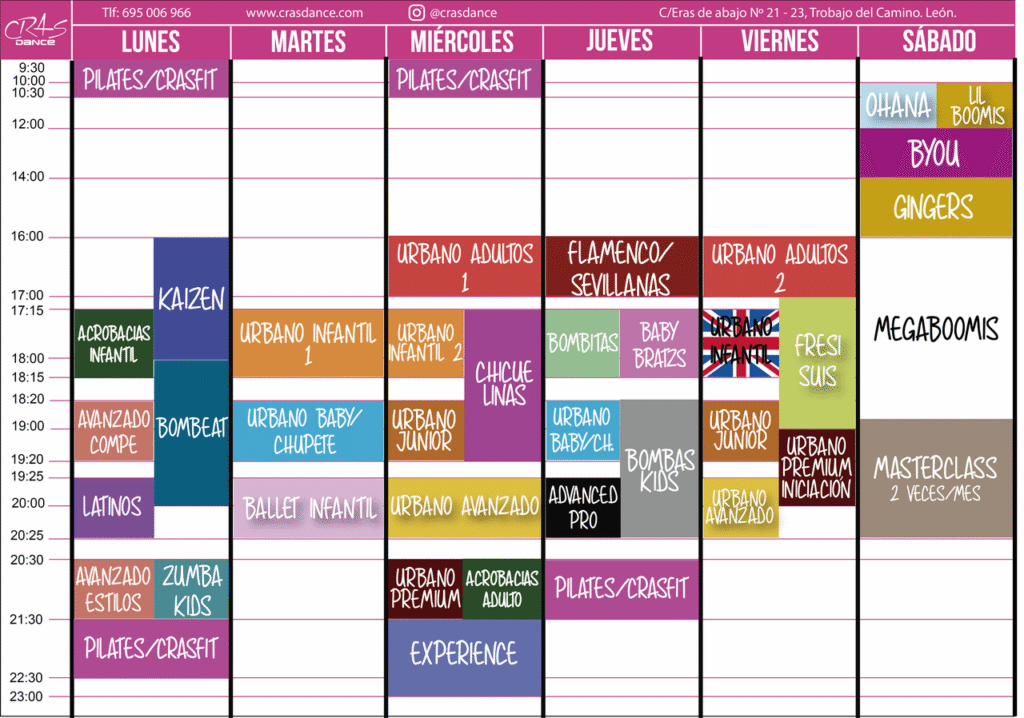 ¡Lleva siempre contigo el horario y no te pierdas ninguna clase!